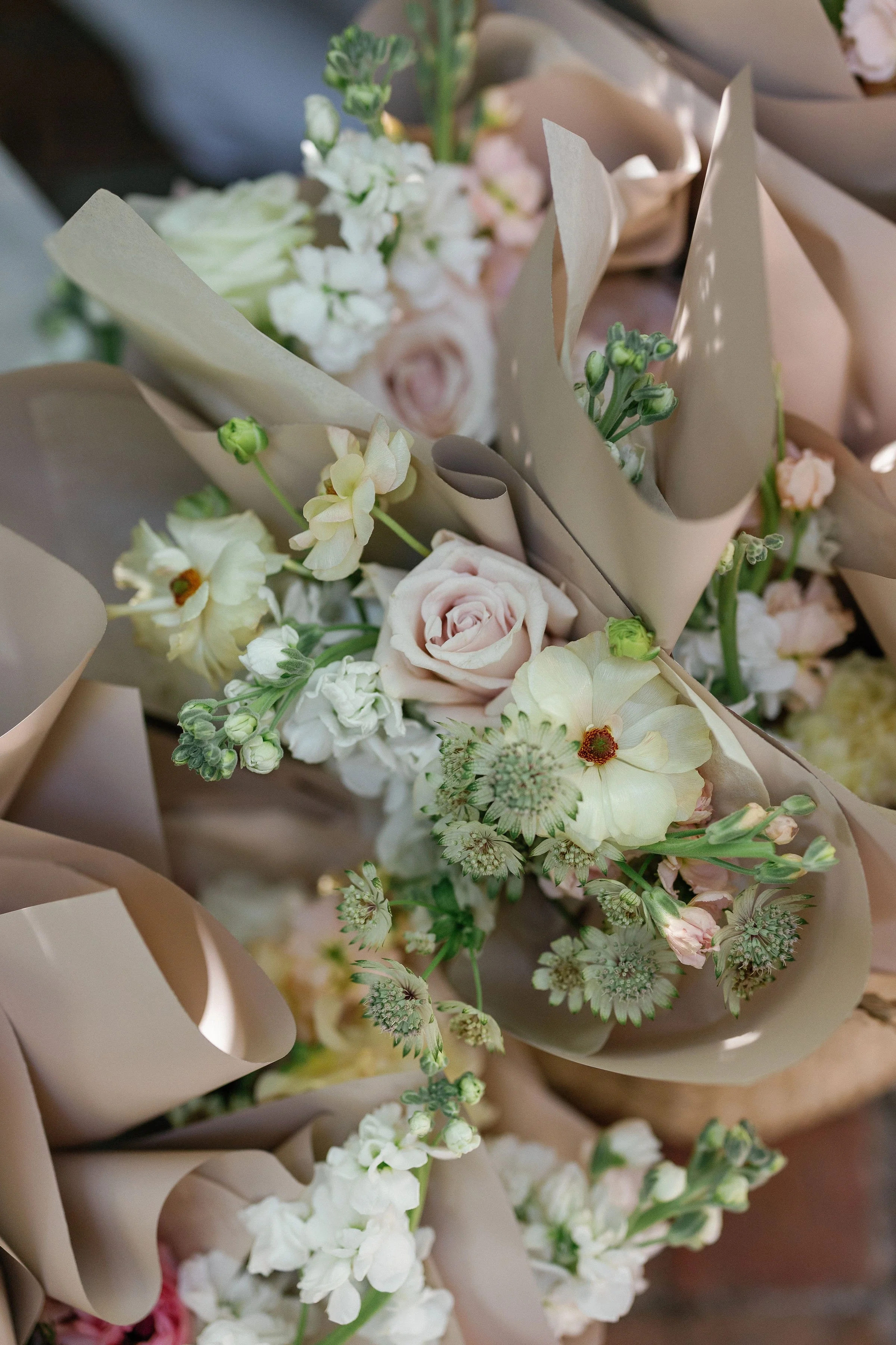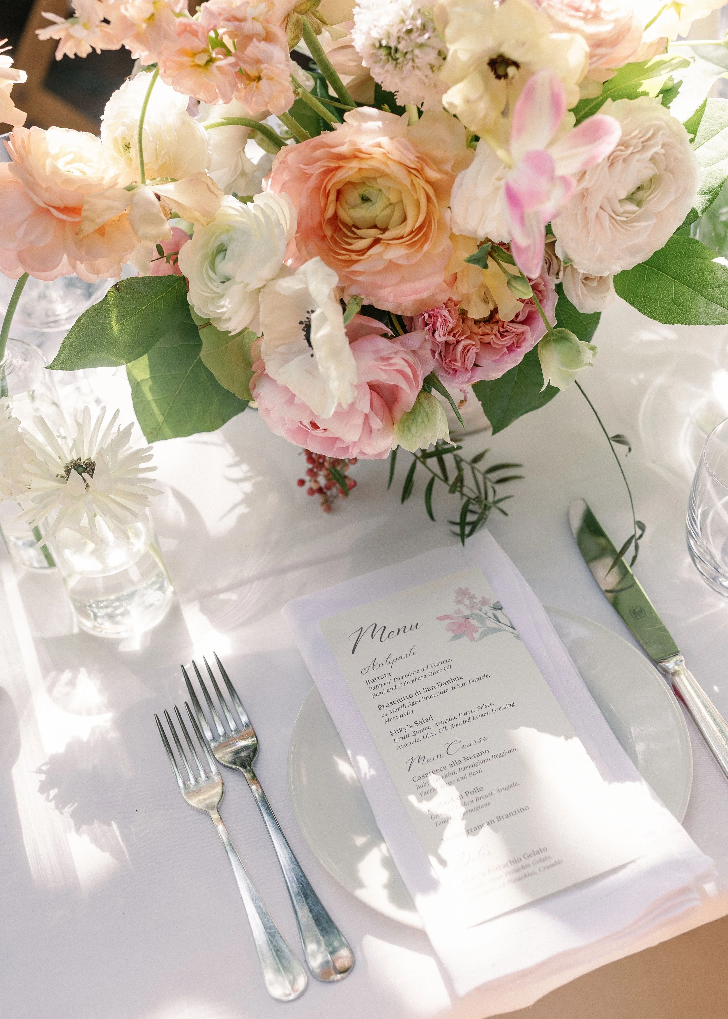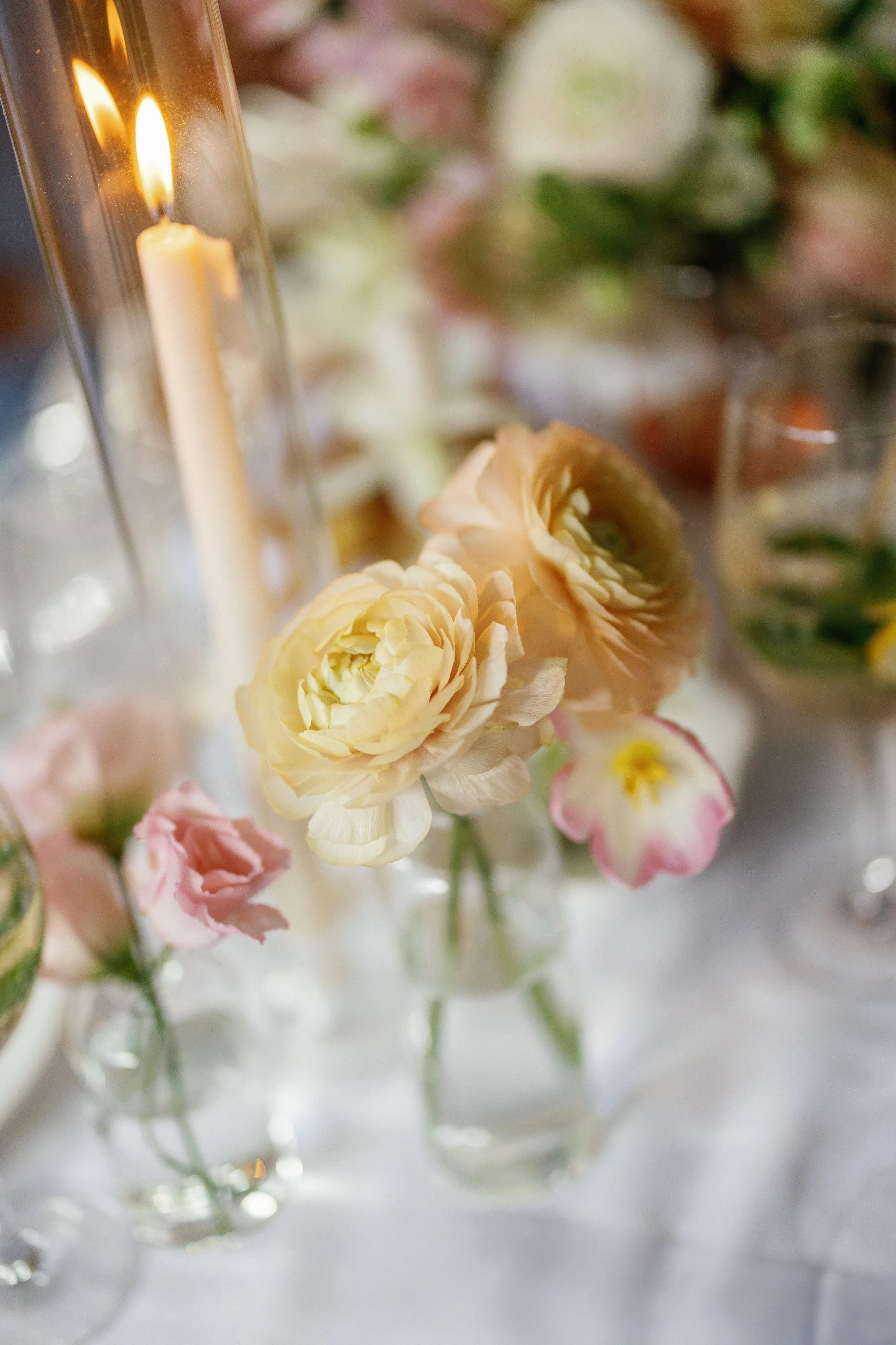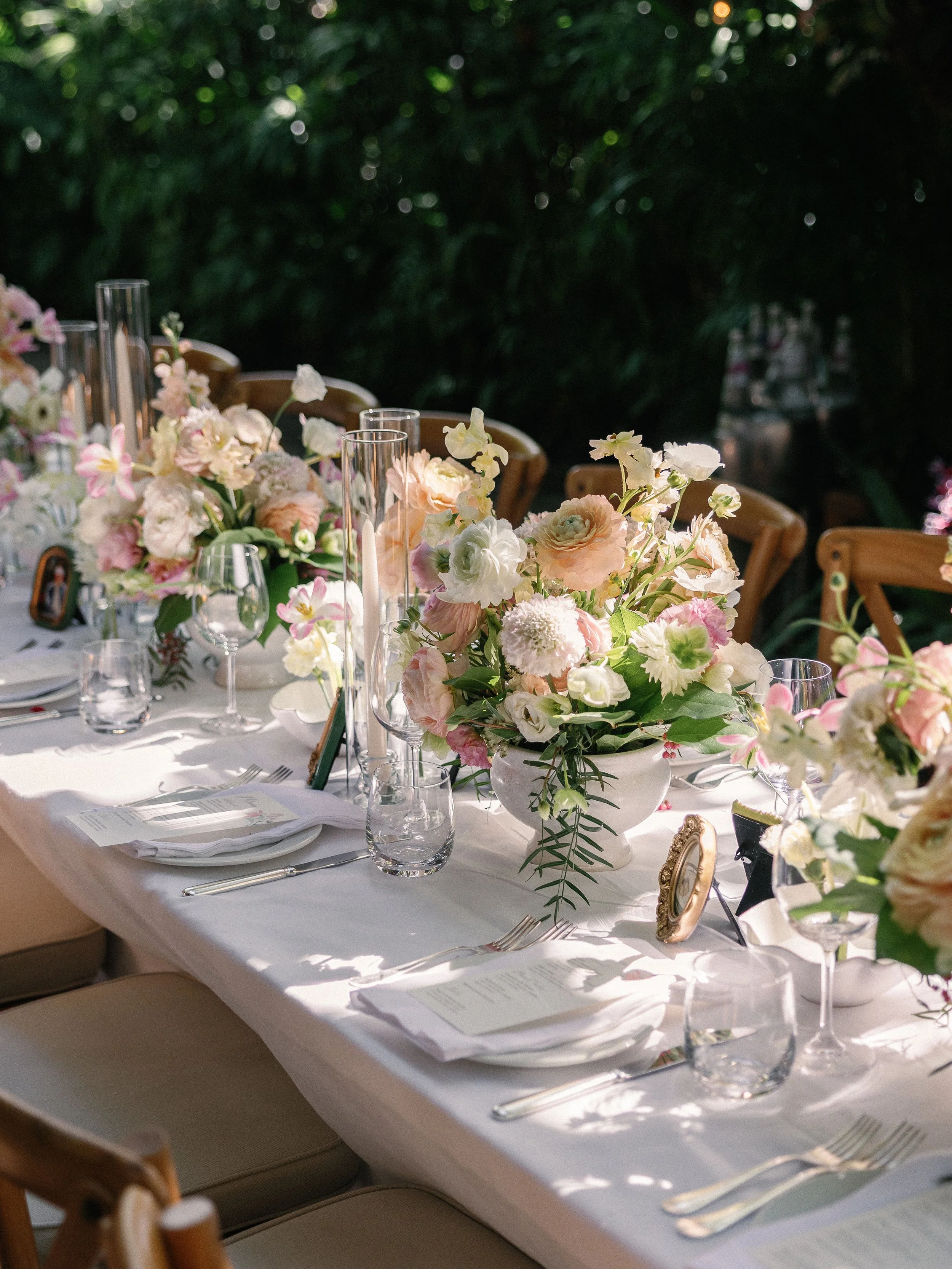 It was a beautiful day in Miami Beach—truly the perfect kind of South Beach day—for Sasha’s bridal shower at Casa Tua. Her sister, Marina, reached out to share her vision: an elegant, romantic, garden-inspired table setting. I wanted to bring that to life with a delicate, timeless feel, using a soft palette of whites, creams, blush pinks, and peach tones arranged in white ceramic vases.